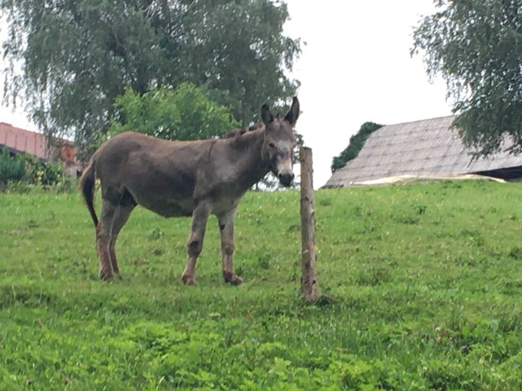 Und was den Esel betrifft. Tja. Auf unserem Weg zurück sah ich Ziegen und sagte laut: „Toll Ziegen, aber ich weiß noch immer nicht, was es mit dem Esel auf sich hat! Die Mädels lachten und sagten: „Schau einmal rechts! Hier stand er, genau in dem Moment …. *LOL*: