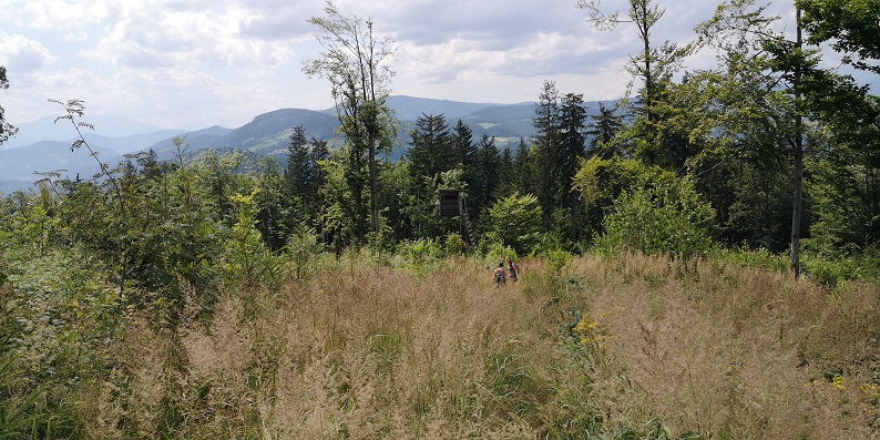 Von Radioklub Radje ob Dravi aus ging es ein kleines Stück bergauf. Durch das Dickicht. Oben am Bergkamm angekommen, hätten wir nach links gehen sollen. Taten wir zunächst nicht. Wir gingen rechts, bis wir anstanden. Wir kehrten zurück gingen an einer Kreuzung vorbei um dann wieder auf der Kreuzung zu gelangen und festzustellen, dass es nur noch einen Weg gab. Die Spirits hatten ihren Spaß mit uns indem sie uns hin und her schickten.