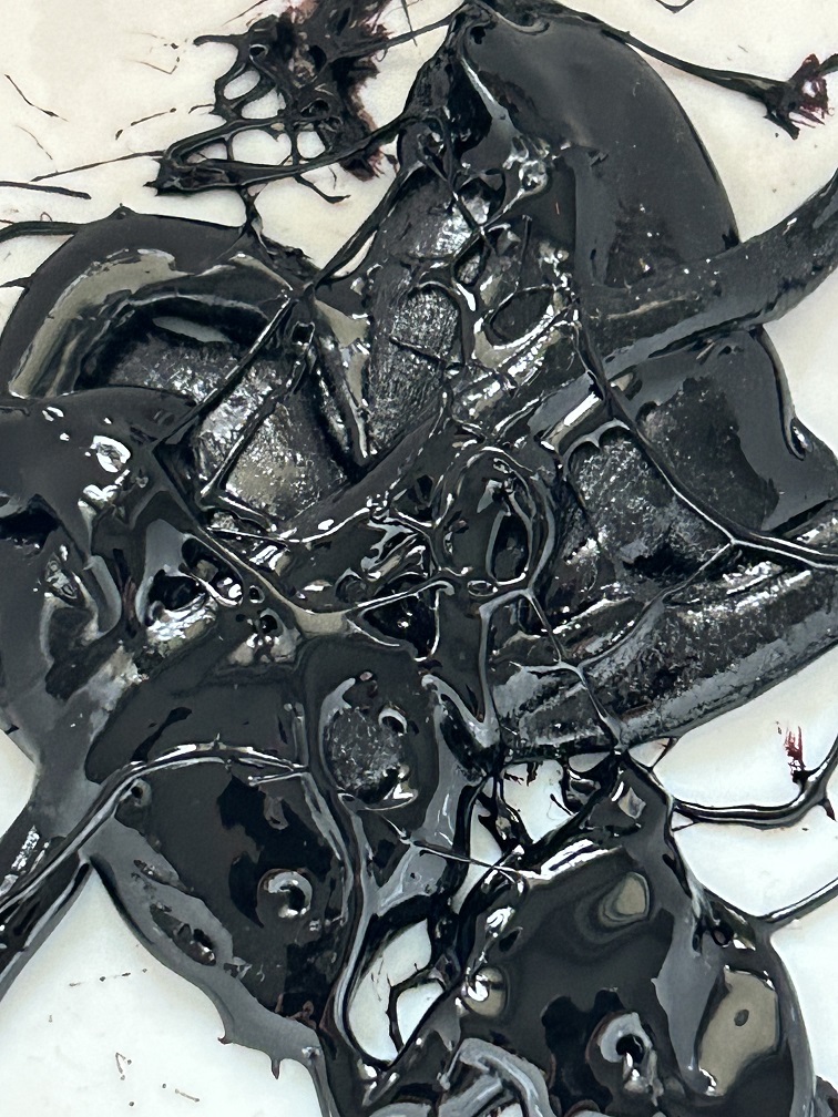 Es war ein auf und ab, ein Gefühlschaos. Nicht zu schlimm, aber doch anstrengend. Dazu kam, dass ich körperliche Symptome und schlaflose Nächte dank hormoneller Umstellung hatte. Ich konnte bei all den Themen keinen roten Faden finden. So sehr ich mich bemühte, es ergab keinen Sinn für mich. Es fühlte sich wie dieser dunkle schwarze Klumpen an: der übrigens von der Kalzination des Holunders stammte: