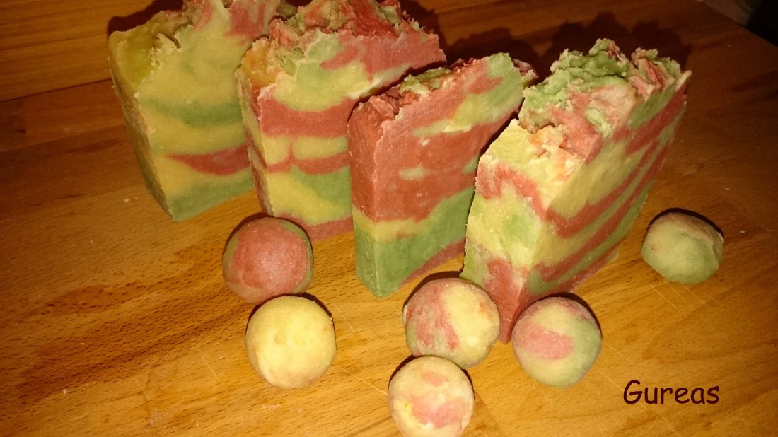 Diese Seife haben eine Freundin und ich gemeinsam zu Silvester gesiedet. Es war die erste Seife für Doris. Und sie hat sich toll angestellt. Viel ruhiger als ich und nachdem sie kochen liebt schien der ganze Prozess für sie sehr einfach zu sein. Wir haben die Seife bewusst unbeduftet gelassen. Rezept: 75% Kokos, 20% Olive, … Weiterlesen No 4: – Salzseife